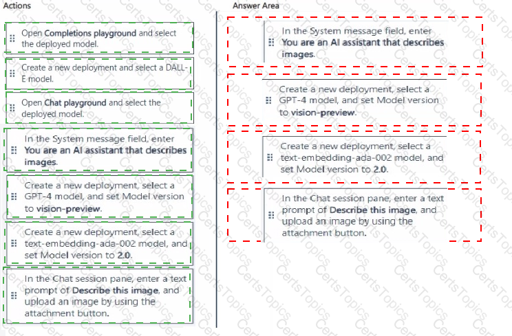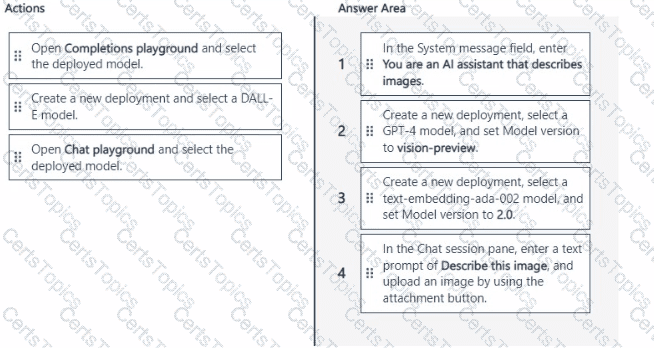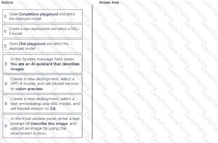 Which four actions should you perform in sequence from Azure OpenAI Studio? To answer, move the appropriate actions from the list of actions to the answer area and arrange them in the correct order.