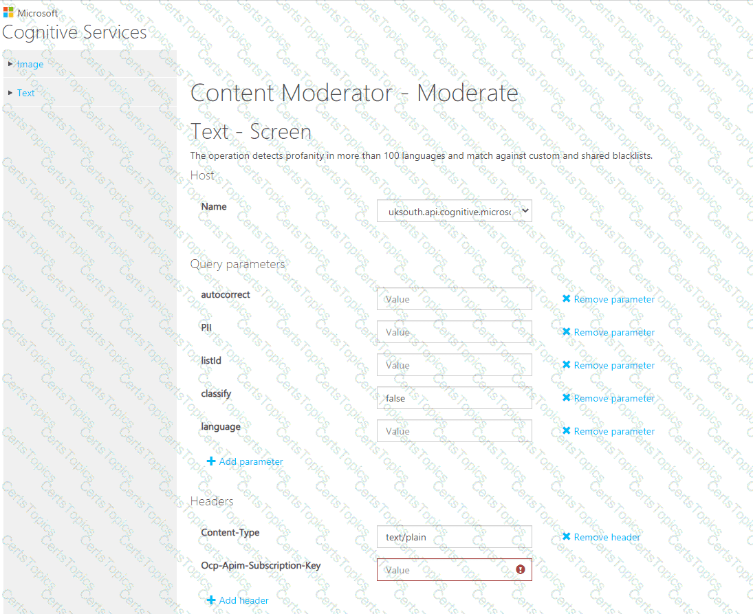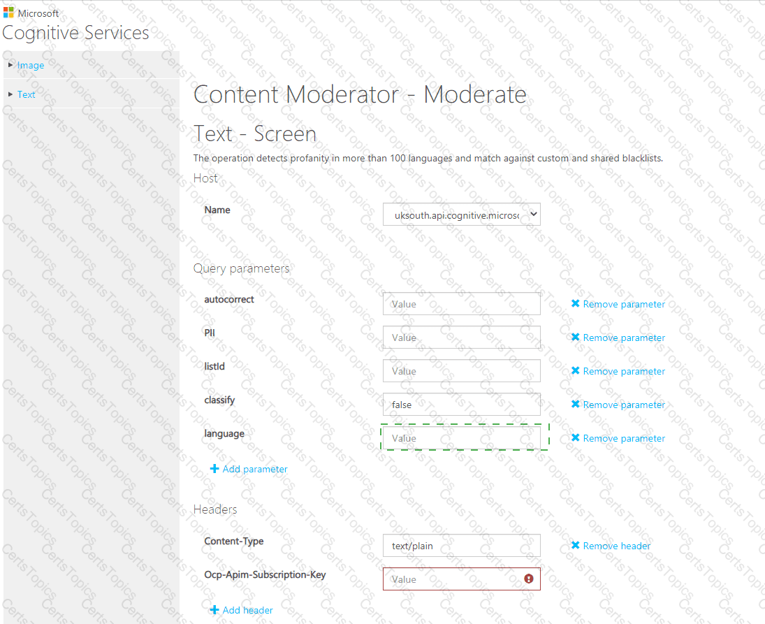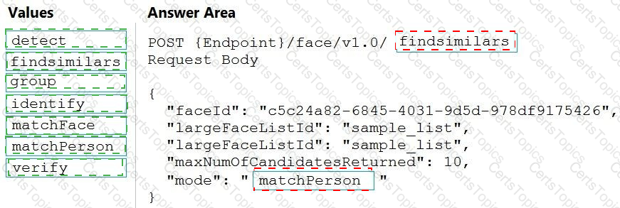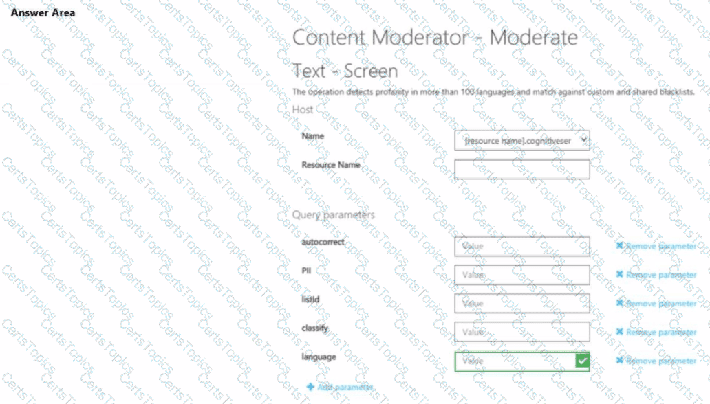 Which Azure Cognitive Services API should you use? To answer, select the appropriate options in the answer area.