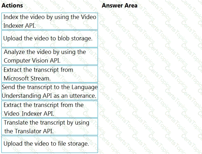 Which three actions should you perform in sequence? To answer, move the appropriate actions from the list of actions to the answer area and arrange them in the correct order.
