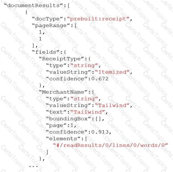 You upload the receipt images to the From Recognizer API for analysis, and the API ret urns the following JSON.