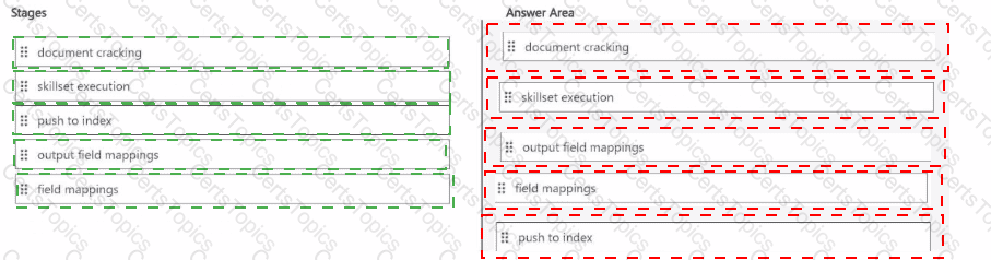 How should you complete the skillset design diagram? To answer, drag the appropriate services to the correct stages. Each service may be used once, more than once, or not at all. You may need to drag the split bar between panes or scroll to view content.