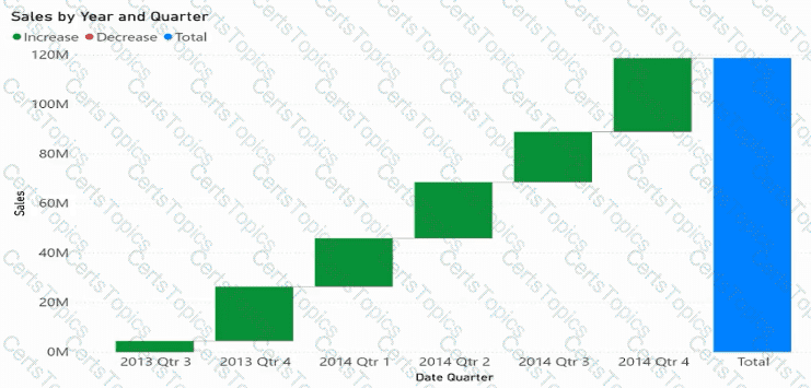 You need to create a visualization of running sales totals per quarter as shown in the following exhibit.