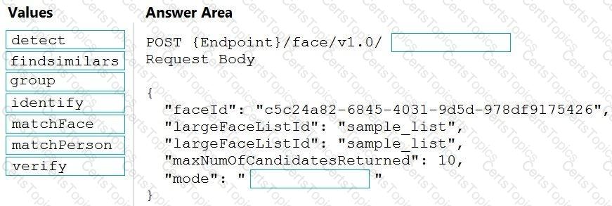 How should you complete the request? To answer, drag the appropriate values to the correct targets. Each value may be used once, more than once, or not at all. You may need to drag the split bar between panes or scroll to view content.