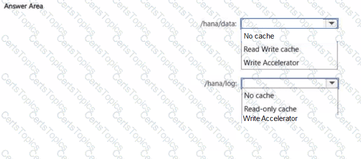You plan to migrate the deployment to Azure virtual machines. The migrated deployment will use Azure Premium Storage VI SSD for the volume that will host /hana/data and Azure ultra disks for the volume that will host /hana/logs.