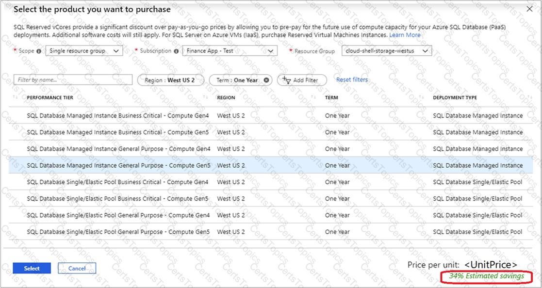 You are evaluating whether to use Azure reservations on the Azure SQL database.