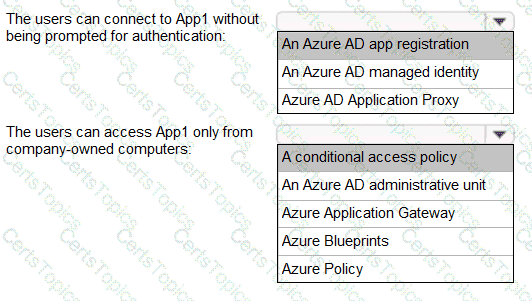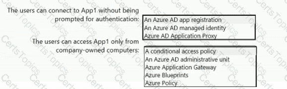 You need to recommend a solution to ensure that the users can connect to App1 without being prompted for authentication and can access App1 only from company-owned computers.