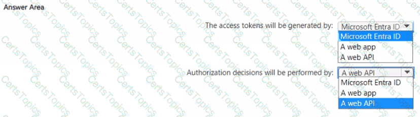 You are designing a software as a service (SaaS) application that will enable Microsoft Entra users to create and publish online surveys. The SaaS application will have a front-end web app and a back-end web API. The web app will rely on the web API to handle updates to customer surveys.