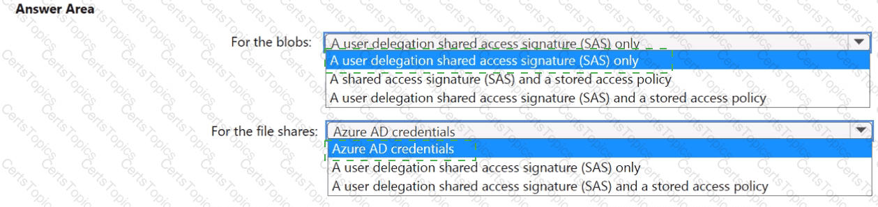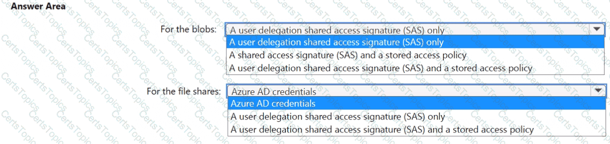You plan to deploy five storage accounts that will store block blobs and five storage accounts that will host file shares. The file shares will be accessed by using the SMB protocol.