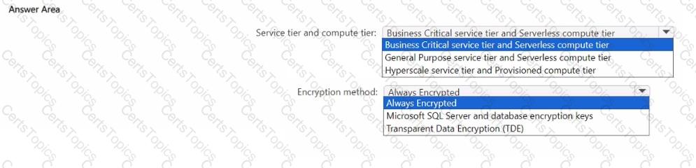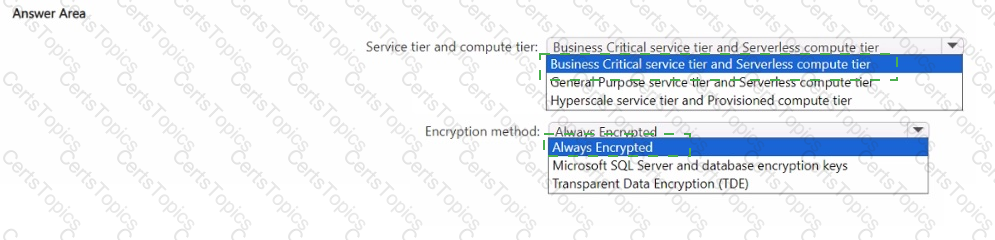 You need to ensure that the Azure database and the service tier meet the resiliency and business requirements.