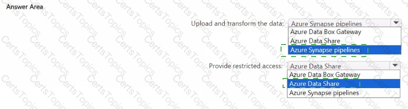 Contoso plans to upload the research data on FabrikamVMI to contosolakel. During the upload, the research data must be transformed to the data formats used by Contoso.