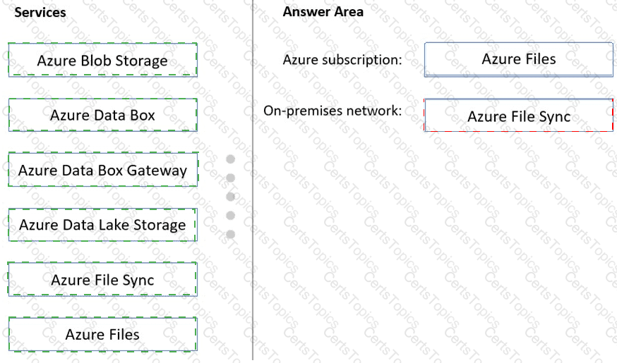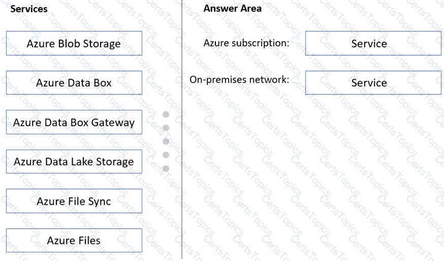 What should you deploy to the Azure subscription and the on-premises network? To answer, drag the appropriate services to the correct locations. Each service may be used once, more than once, or not at all. You may need to drag the split bar between panes or scroll to view content.