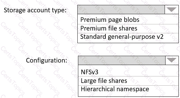 Which type of storage should you recommend, and how should you recommend configuring the storage? To answer, select the appropriate options in the answer area.