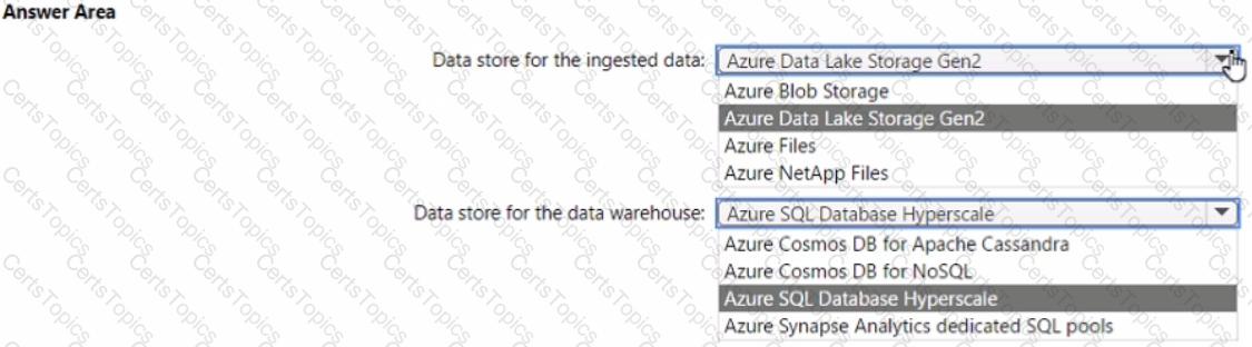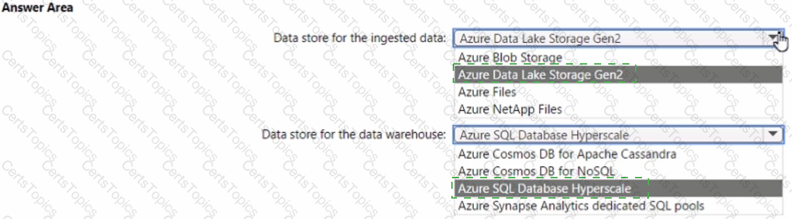 Which service should you recommend for each type of data store? To answer, select the appropriate options in the answer area.
