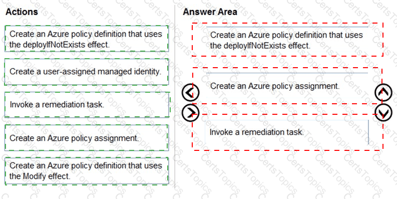 Which three actions should you perform in sequence? To answer, move the appropriate actions from the list of actions to the answer area and arrange them in the correct order.