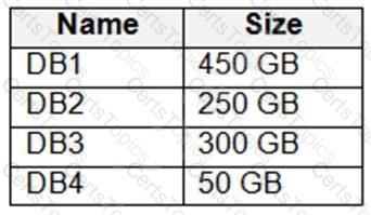 Your company has an app named App1 that uses data from the on-premises Microsoft SQL Server databases shown in the following table.