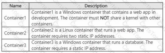 You have a Windows Server container host named Server! that has a single disk. On Server1, you plan to start the containers shown in the following table.