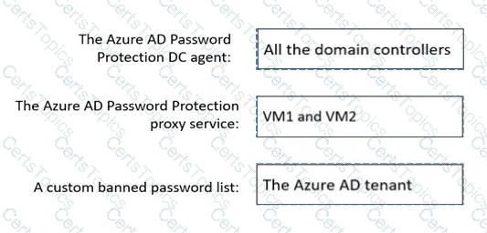 Where should you configure the components for Azure AD Password Protection? lo answer, drag the appropriate components to the correct locations. Each component may be used once, more than once, or not at all. You may need to drag the split bar between panes or scroll to view content.