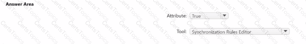 How should you configure the Azure AD Connect cloudFiltered attribute, and which tool should you use? To answer, select the appropriate options in the answer area.