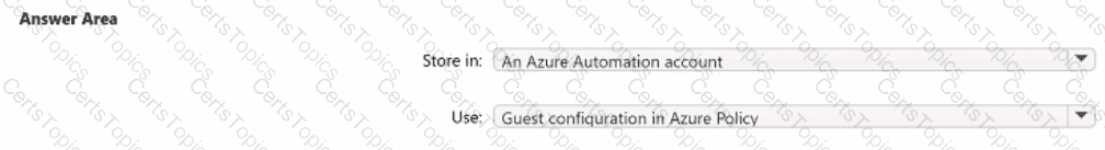 Where should you store the DSC scripts, and what should you use to apply DSC to the servers? To answer, select the appropriate options in the answer area.