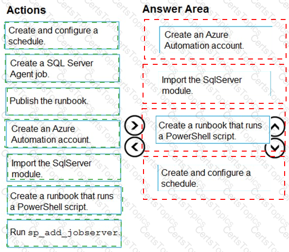 Which actions should you perform in sequence? To answer, drag the appropriate actions to the correct order. Each action may be used once, more than once, or not at all. You may need to drag the split bar between panes or scroll to view content.