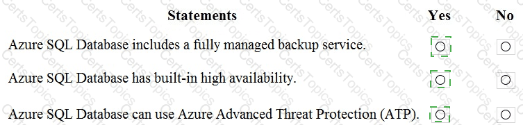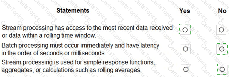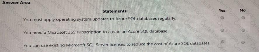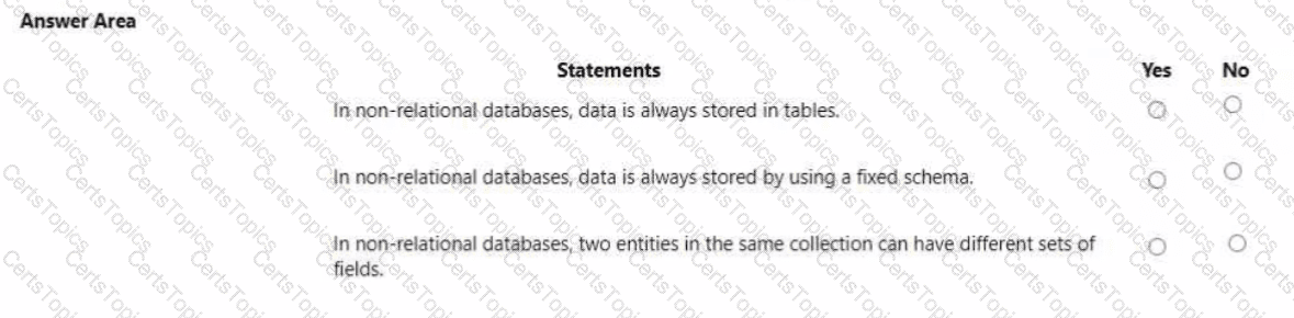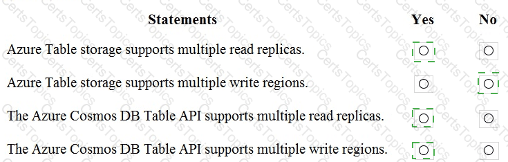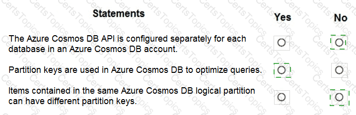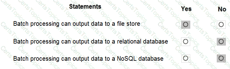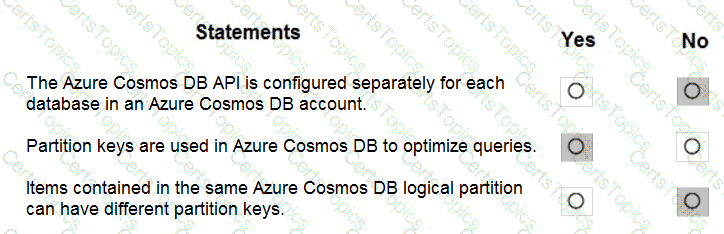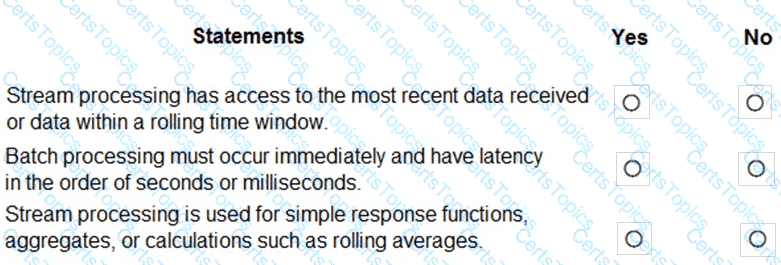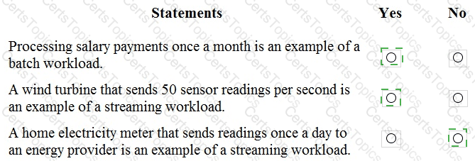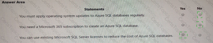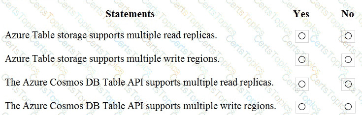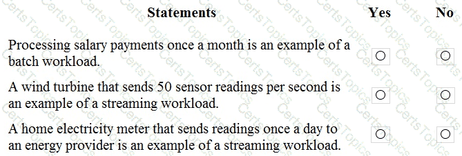For each of the following stateme nts, select Yes if the statement is true. Otherwise, select No.
