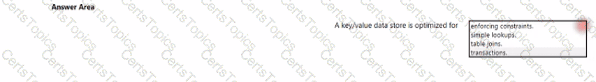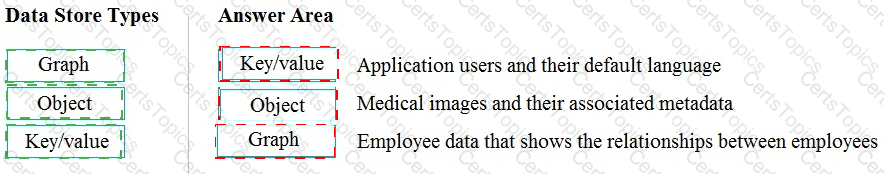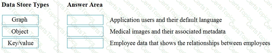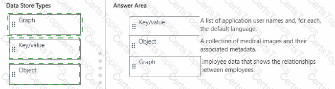 To answer, drag the appropriate data store type from the column on the left to its scenario on the right. Each data store type may be used once, more than once, or not at all.