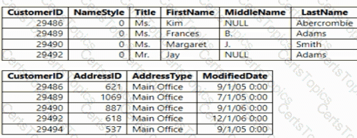 Which two Transact-SQL statements should you include in the query? Each correct answer presents part of the solution. NOTE: Each correct selection is worth one point.