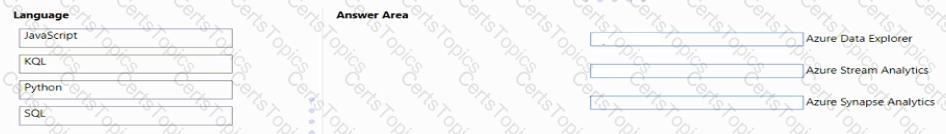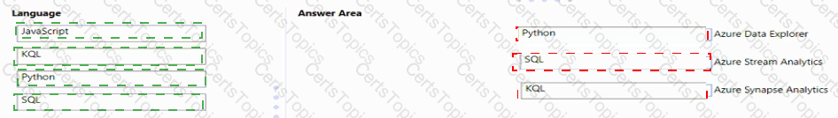 To answer, drag the appropriate language from the column on the left to its service on the right. Each language may be used once, more than once, or not at all.