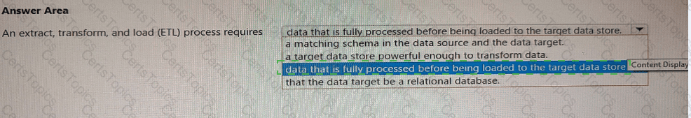 Your company plans to load data from a customer relationship management (CRM) system to a data warehouse by using an extract, load, and transform (ELT) process.
