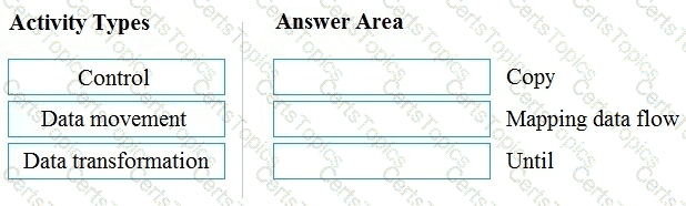 Match the types of activities to the appropriate Azure Data Factory activities.
