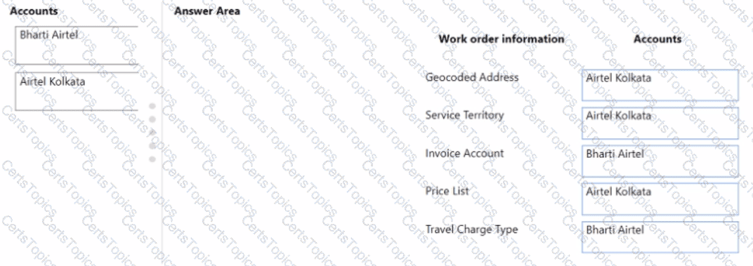 As the work order administrator, you need to ensure that the prices used when generating the invoices for work completed are correct, based on the agreement with the customer and the territory of the customer.