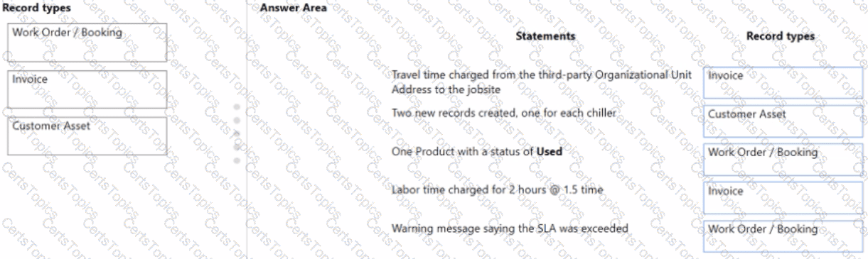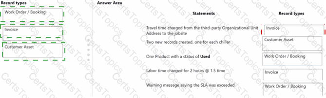 When performing a quality check, what will the back office employee expect to see as a result of this service call? To answer, drag the appropriate record type to the correct statement. Each record type may be used once, more than once, or not at all. You may need to drag the split bar between panes or scroll to view content.