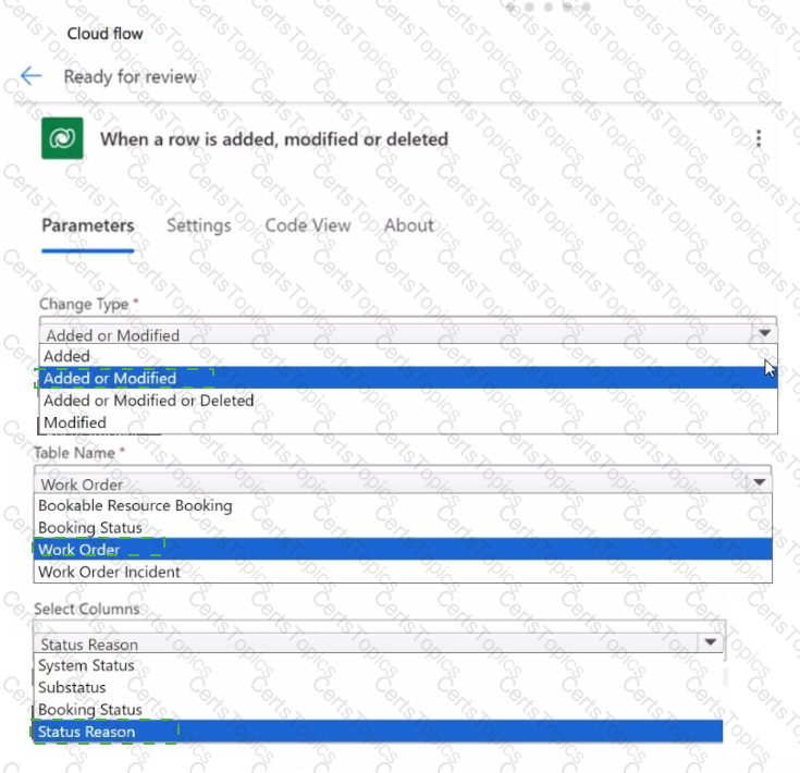 How should you configure the cloud flow ' s trigger? To answer, select the appropriate settings in the fields of the cloud flow.