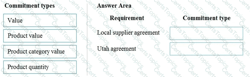 Which commitment types should you use? To answer, drag the appropriate commitment types to the correct requirements. Each commitment type may be used once, more than once, or not at all. You may need to drag the split bar between panes or scroll to view content.