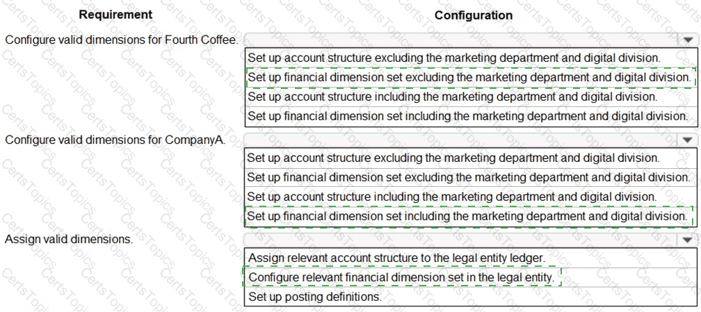 You need to set up the basic configuration to create a fixed asset Each correct answer presents part of the solution.