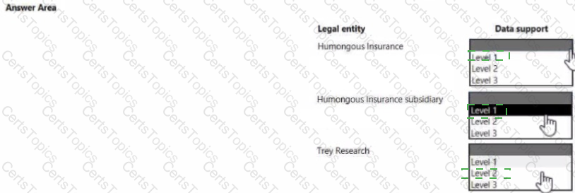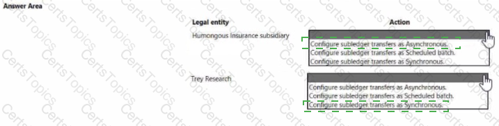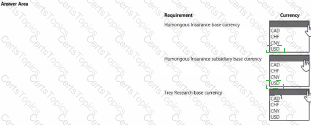 You need to configure expense management tor Humongous Insurance and its subsidiary. Which options should you use? To answer select the appropriate options in me answer area