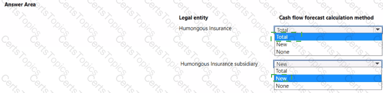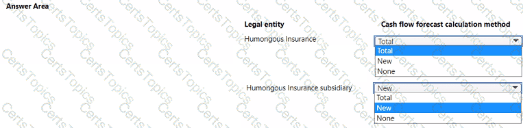 How should you configure cash flow management? To answer, select the appropriate options m the answer area.