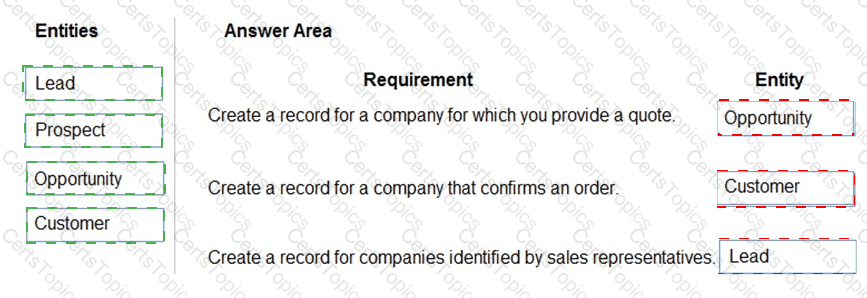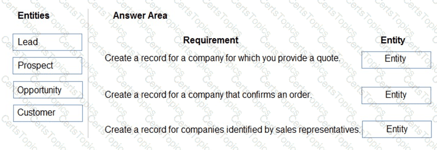 How should you configure the system? To answer, drag the appropriate entities to the correct requirements. Each entity may be used once, more than once, or not at all. You may need to drag the split bar between panes or scroll to view content.