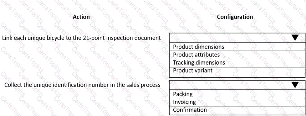 You need to configure the products in Dynamics 365 Supply Chain Management for the requirements.