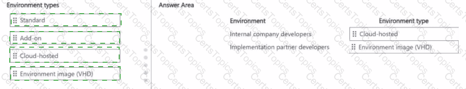 A company uses Dynamics 365 Finance. You build an environment plan for the company. The company plans to develop solutions by using internal company developers as well as implementation partner developers.