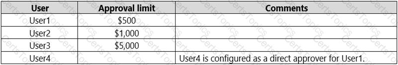 You create and enable an approval workflow. You configure the workflow to use the approver limit type Approver Chain.
