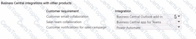 A company uses Dynamics 365 Business Central.
