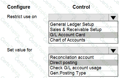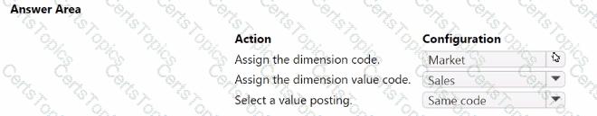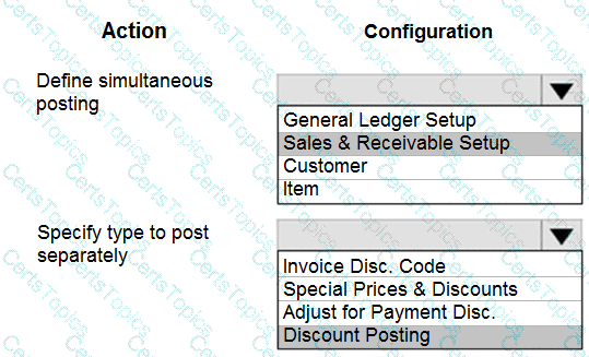 You need to configure the system to post to the receivables account for wholesale customers. Which two configurations should you use? Each correct answer presents part of the solution. NOTE; Each correct selection Is worth one point.