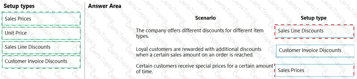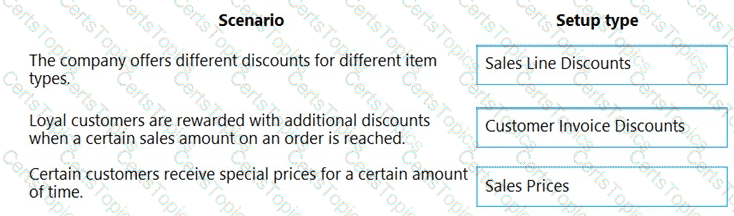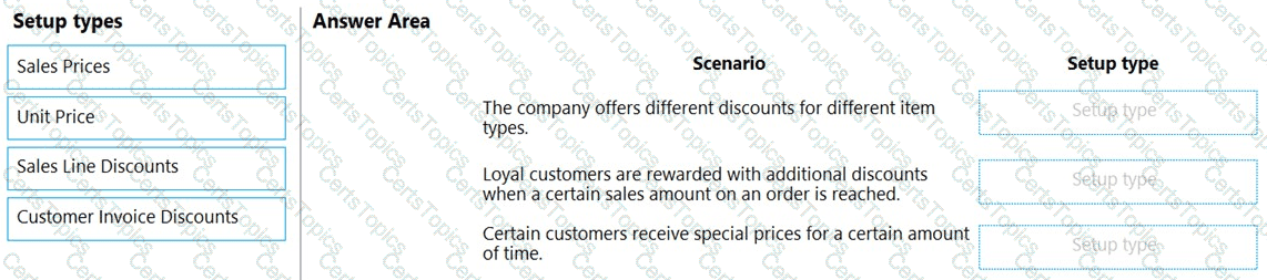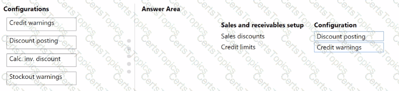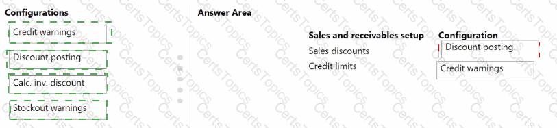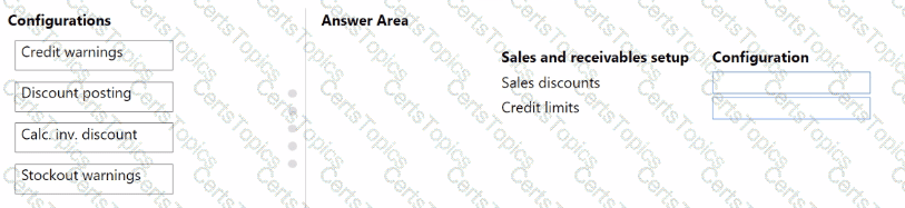 What should you configure for each setup area? To answer, drag the appropriate configurations to the correct sales and receivables setup. Each configuration may be used once, more than once, or not at all. You may need to drag the split bar between panes or scroll to view content.