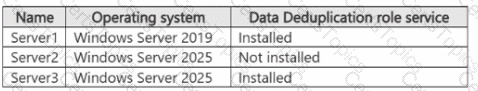 Server3 contains a data disk named Disk1 that has Data Deduplication installed. Disk1 contains the files shown in the following table.
