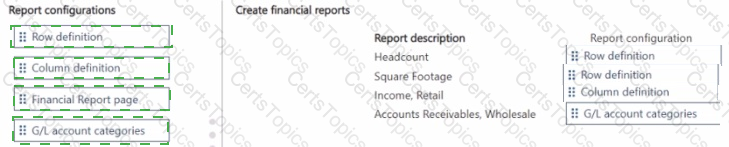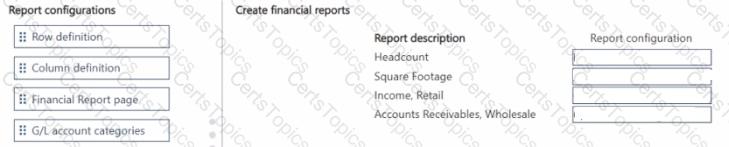Which report configuration should you use to add the report descriptions lo financial reports? To answer, move the appropriate report configurations to the correct report descriptions. You may use each report configuration once, more than once, of not at all. You may need to move the split bar between panes or scroll to view content