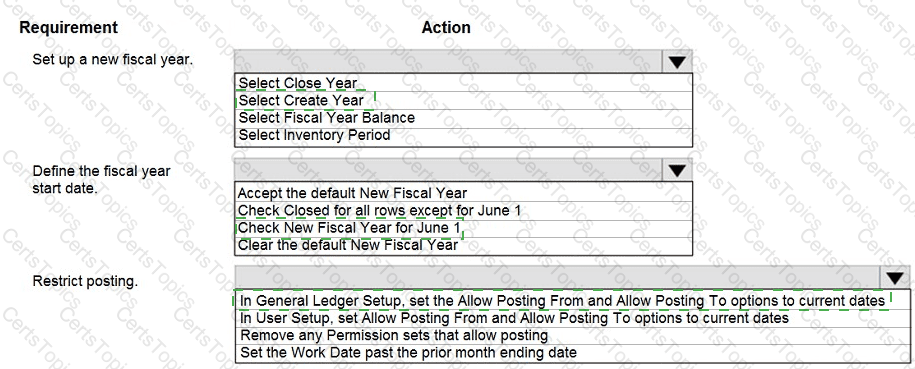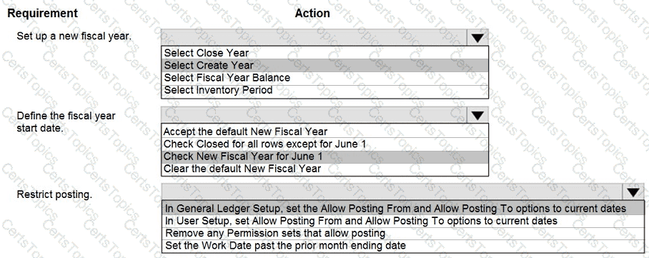 How should you configure the system? To answer, select the appropriate options in the answer area.