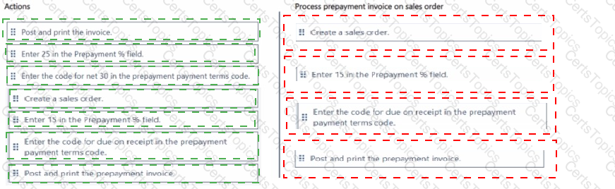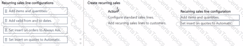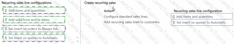 How should you complete each action? To answer, move the appropriate recurring sales line configurations to the correct actions. You may use each recurring sales line configuration once, more than once, or not at all. You may need to move the split bar between panes or scroll to view content.