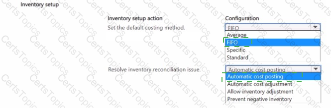 Which two inventory setup configurations should you use? To answer, select the appropriate options in the answer area.