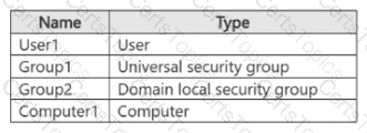 Your network contains an on-premises Active Directory Domain Services (AD DS) domain named contoso.com. The domain contains the objects shown in the following table.